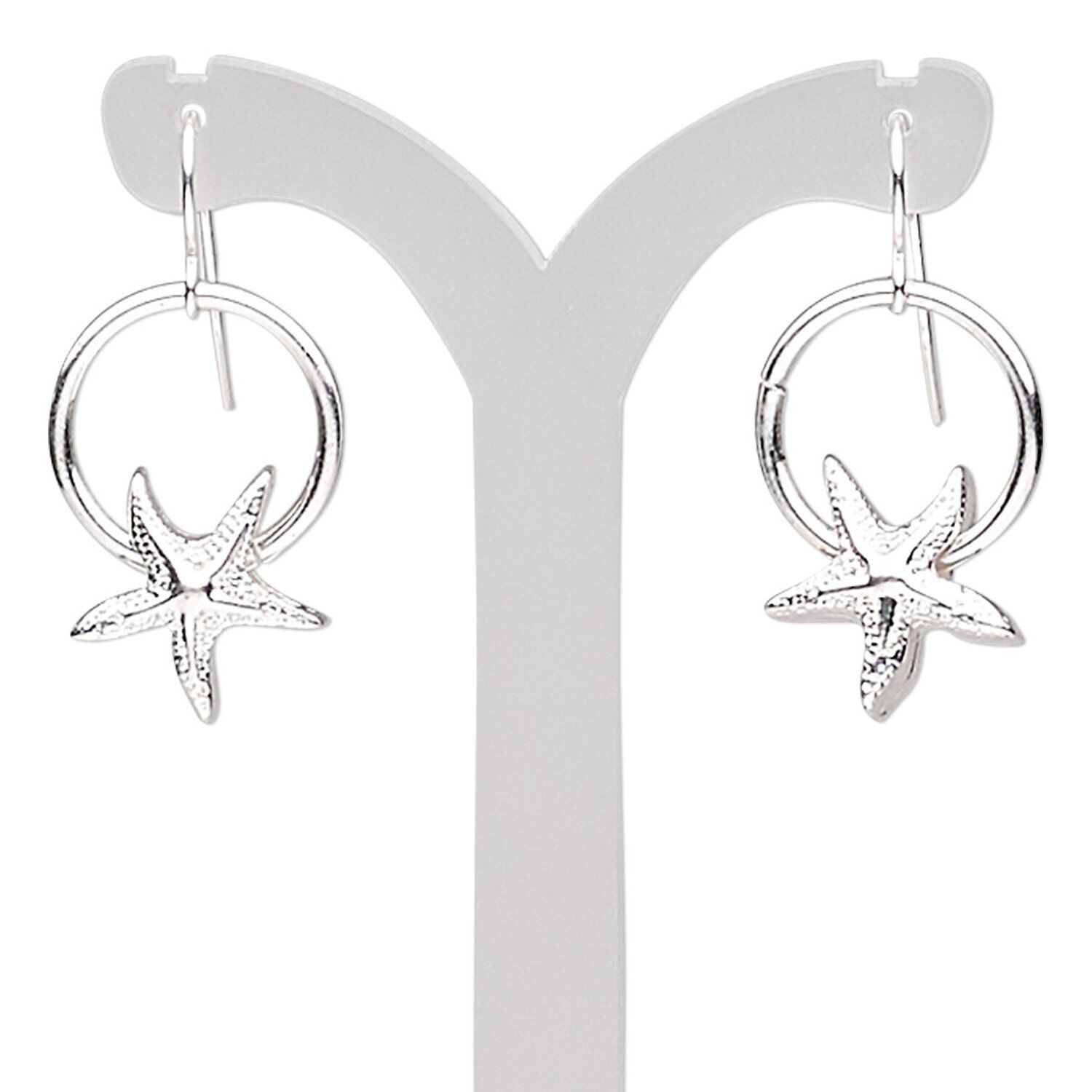 Earring, silver-plated steel and "pewter" (zinc-based alloy), 32mm with open round and starfish with fishhook ear wire. Sold per pair.