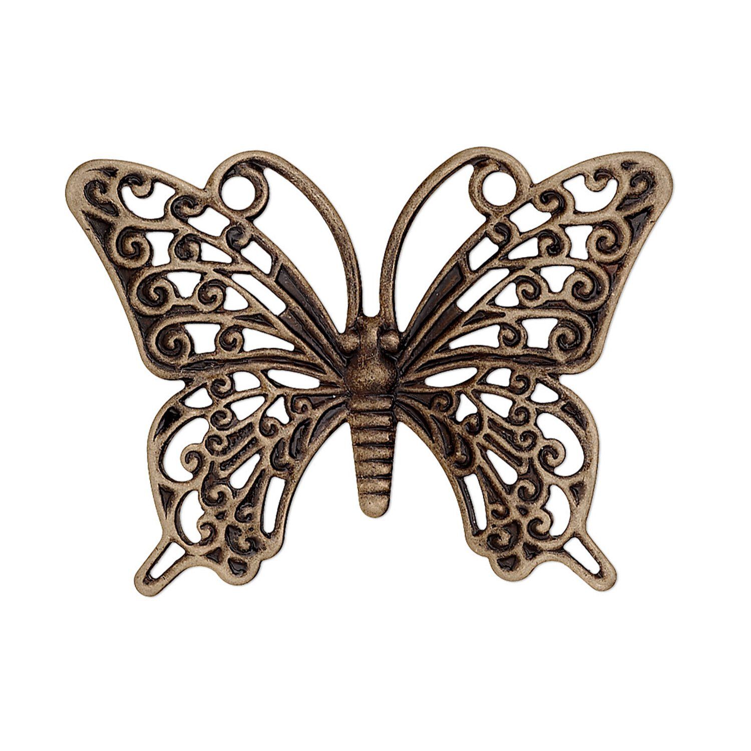 Focal, antiqued brass-colored brass, 36x26mm single-sided fancy butterfly. Sold per pkg of 10.