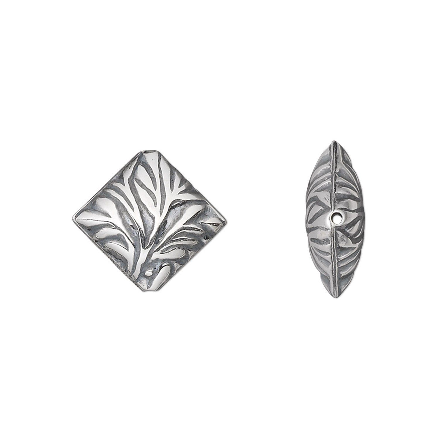 Bead, antiqued sterling silver, 15x15mm puffed textured diamond. Sold individually.