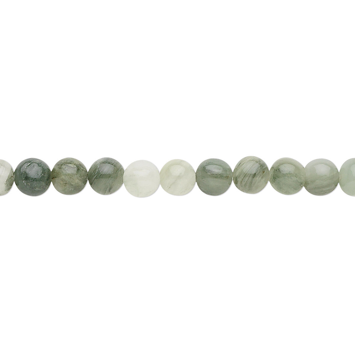 Green line jasper has a semitranslucent grey-green banding. The typical varying patterns of jasper give each bead an individual identity.