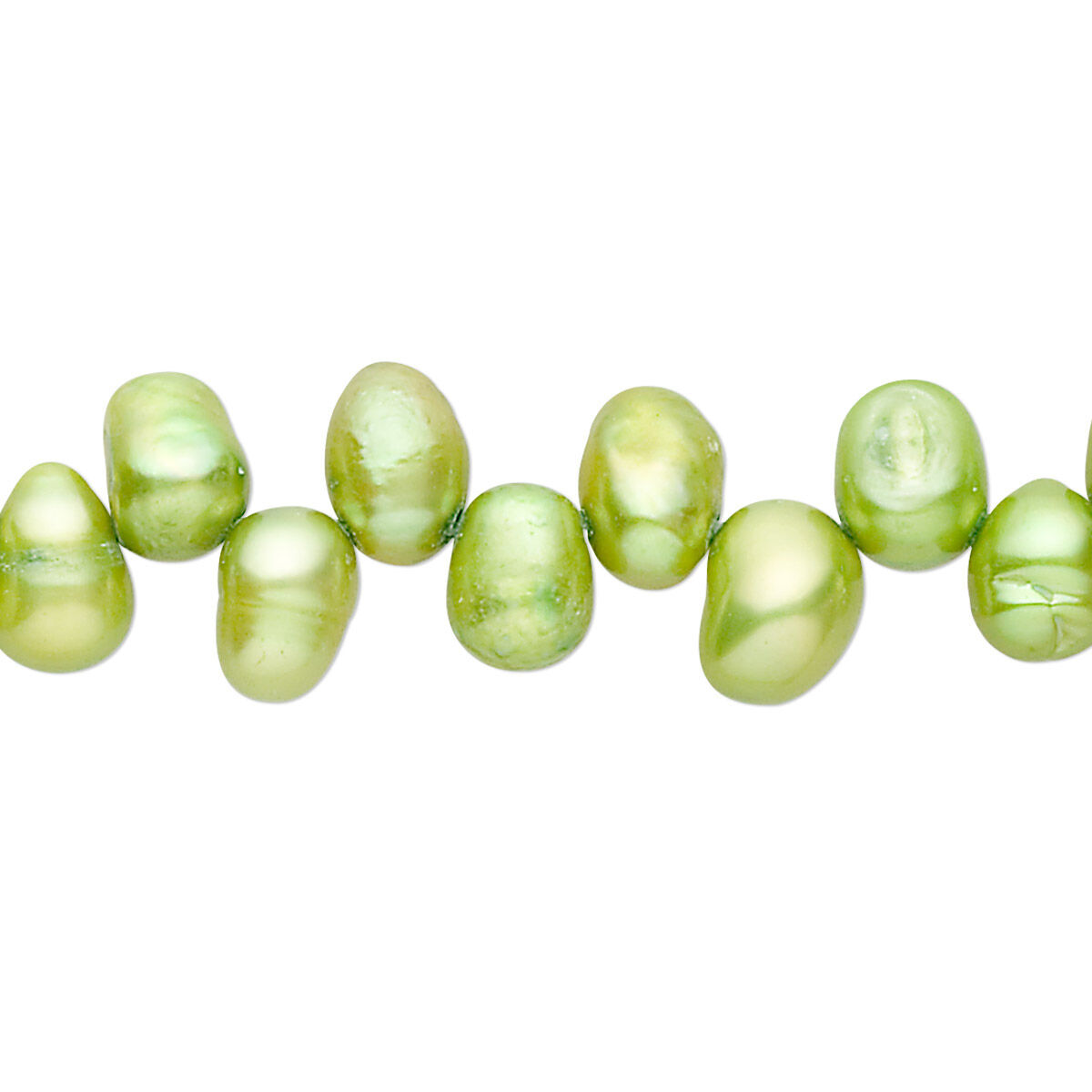 Pearl, cultured freshwater (dyed), yellow-green, 6x5mm-8x6mm top-drilled rice, D grade, Mohs hardness 2-1/2 to 4. Sold per 15-inch strand.