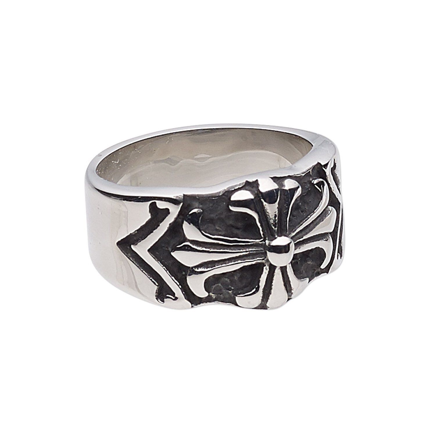 This bold ring rendered in stainless steel has a detail-enhancing antiqued finish to showcase the large cross design. Stainless steel is a dependable, cost-effective metal that resists rust, tarnish, oxidation and corrosion in even tropical or humid environments. The polished gleam of stainless steel is a favorite for men's jewelry.