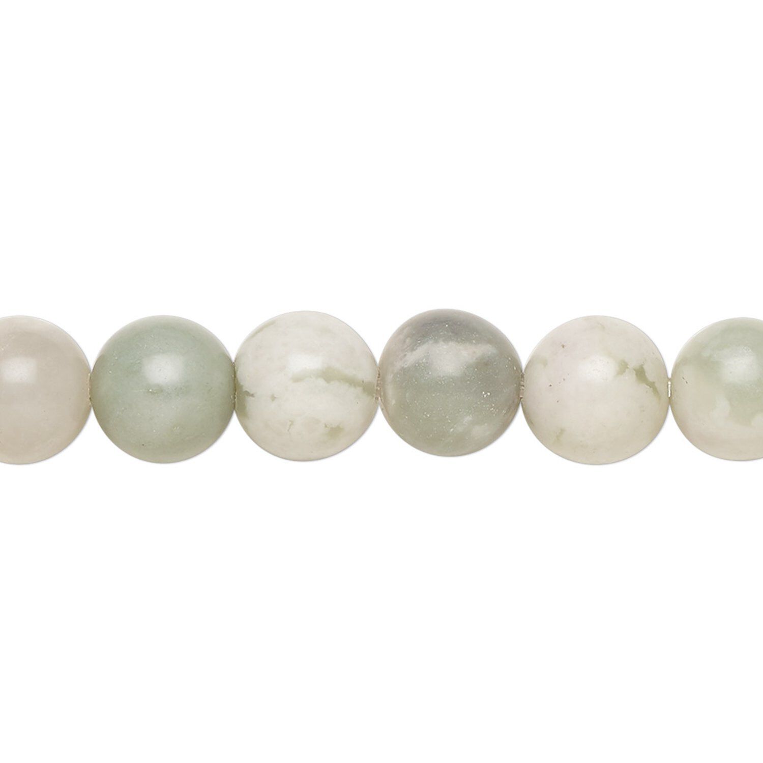 From China, peace "jade" is a beautiful blend of natural green and white. Although it is called "jade," it is actually a mixture of serpentine and white quartz. Beads may contain pink or purple stichtite. Natural colors will vary by stone.