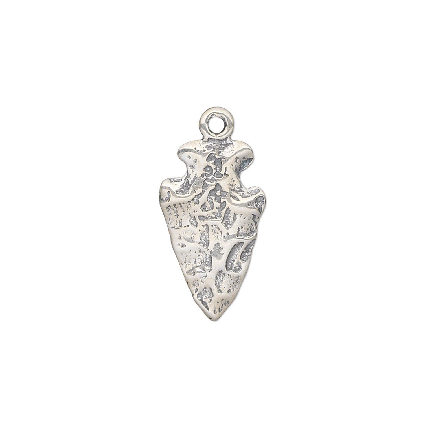 Charm, antiqued sterling silver, 17x10.5mm single-sided arrowhead. Sold individually.
