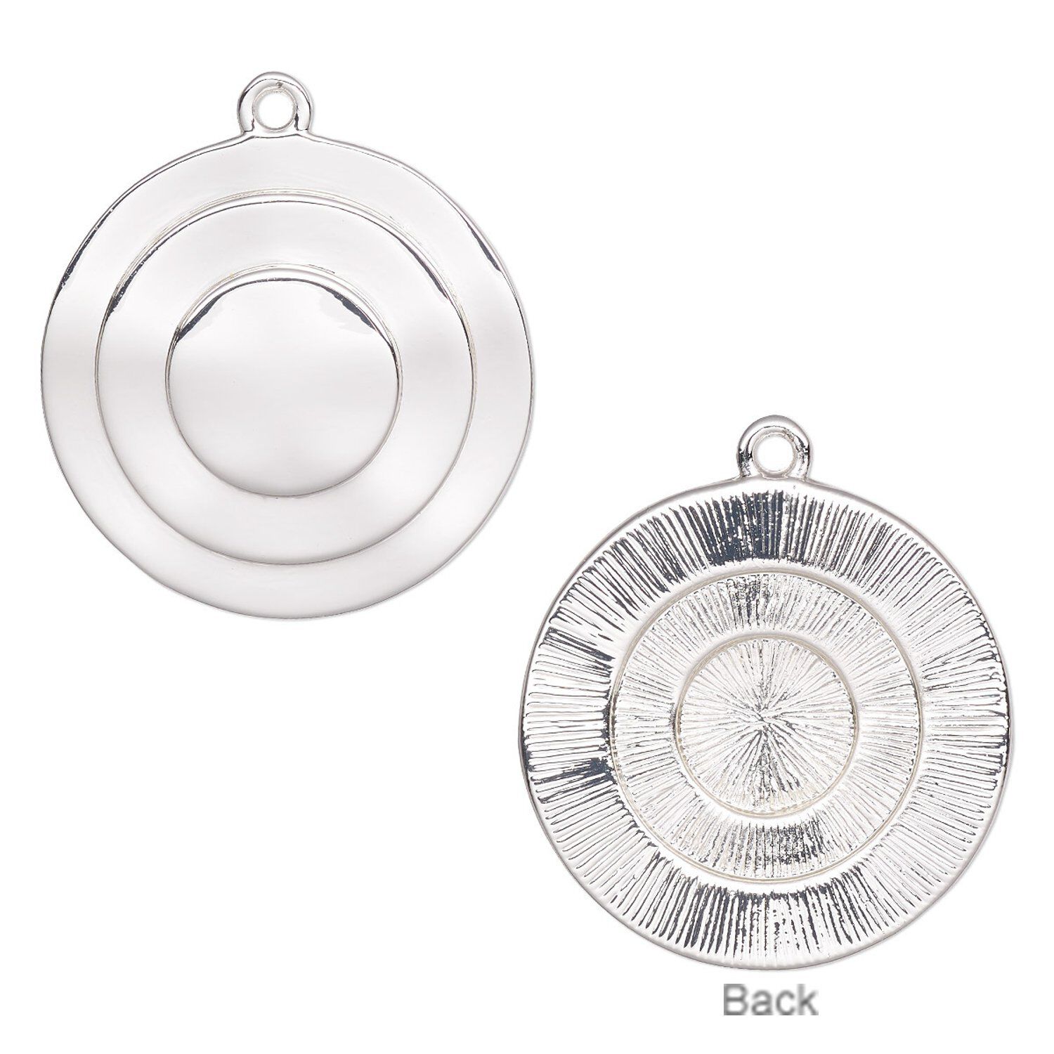 Drop, silver-plated brass, 25mm fancy round. Sold per pkg of 4.