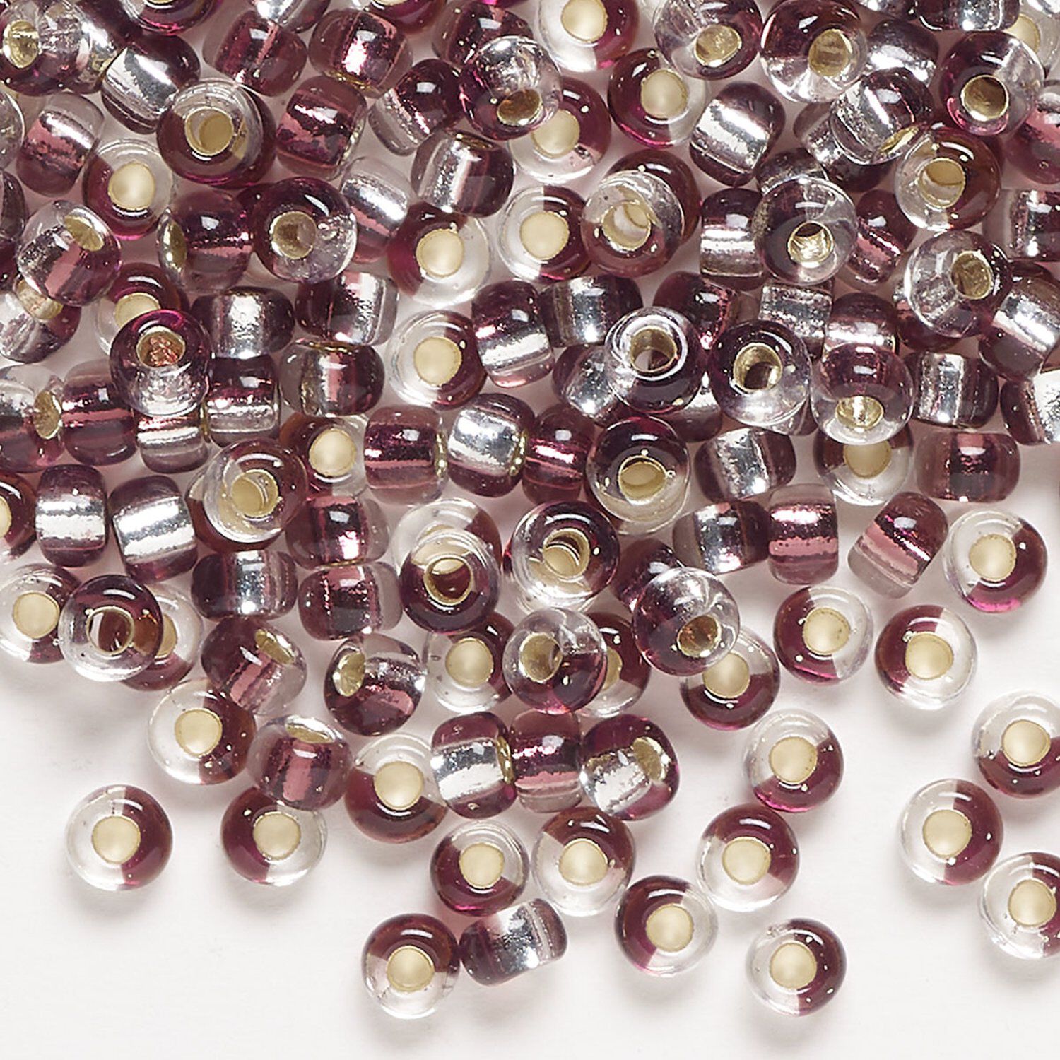 Seed bead, Miyuki, glass, pkg/25g, 4mm irregular round, transparent silver-lined plum/clear, (TB-3933).
