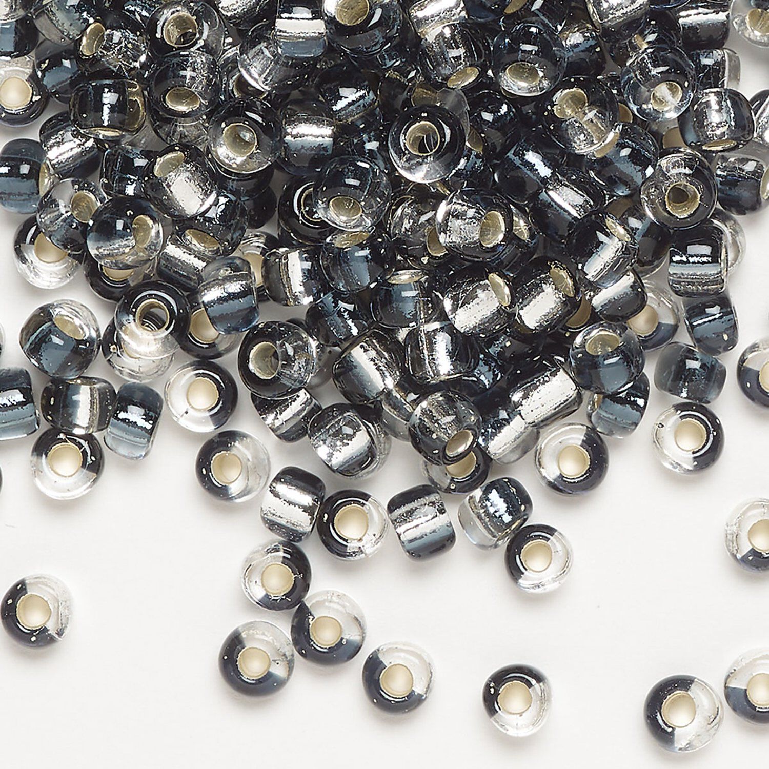 Seed bead, Miyuki, glass, pkg/250g, 4mm irregular round, transparent silver-lined blue-grey/clear, (TB-3935).