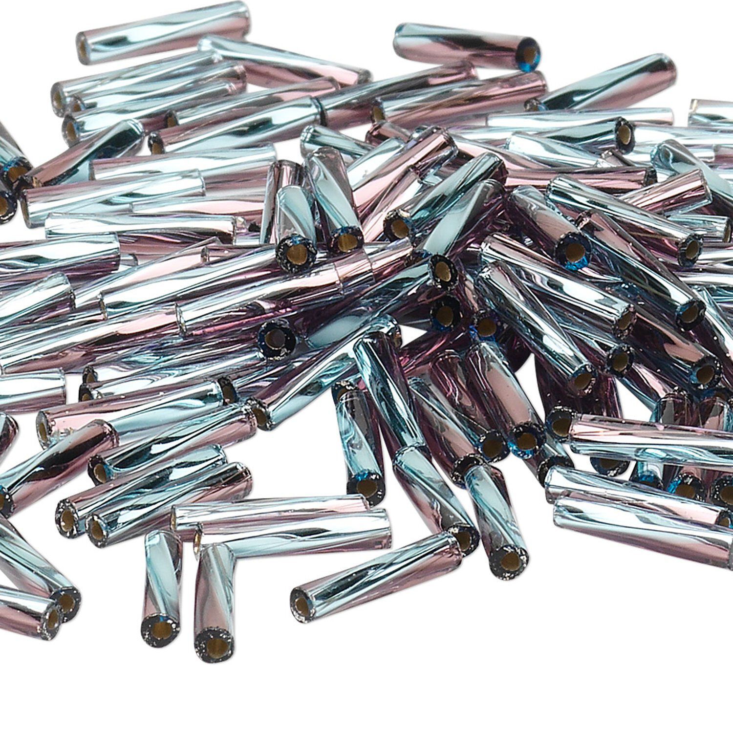 Miyuki's twisted bugle beads align together beautifully, making them the best choice for precision work. Manufactured by Miyuki of Japan, these beads are renowned for their uniform size and shape, and their large hole, allowing for multiple passes of your needle and thread. Every bead has a silver lining for extra shine and pop of color, creating a two-toned appearance.