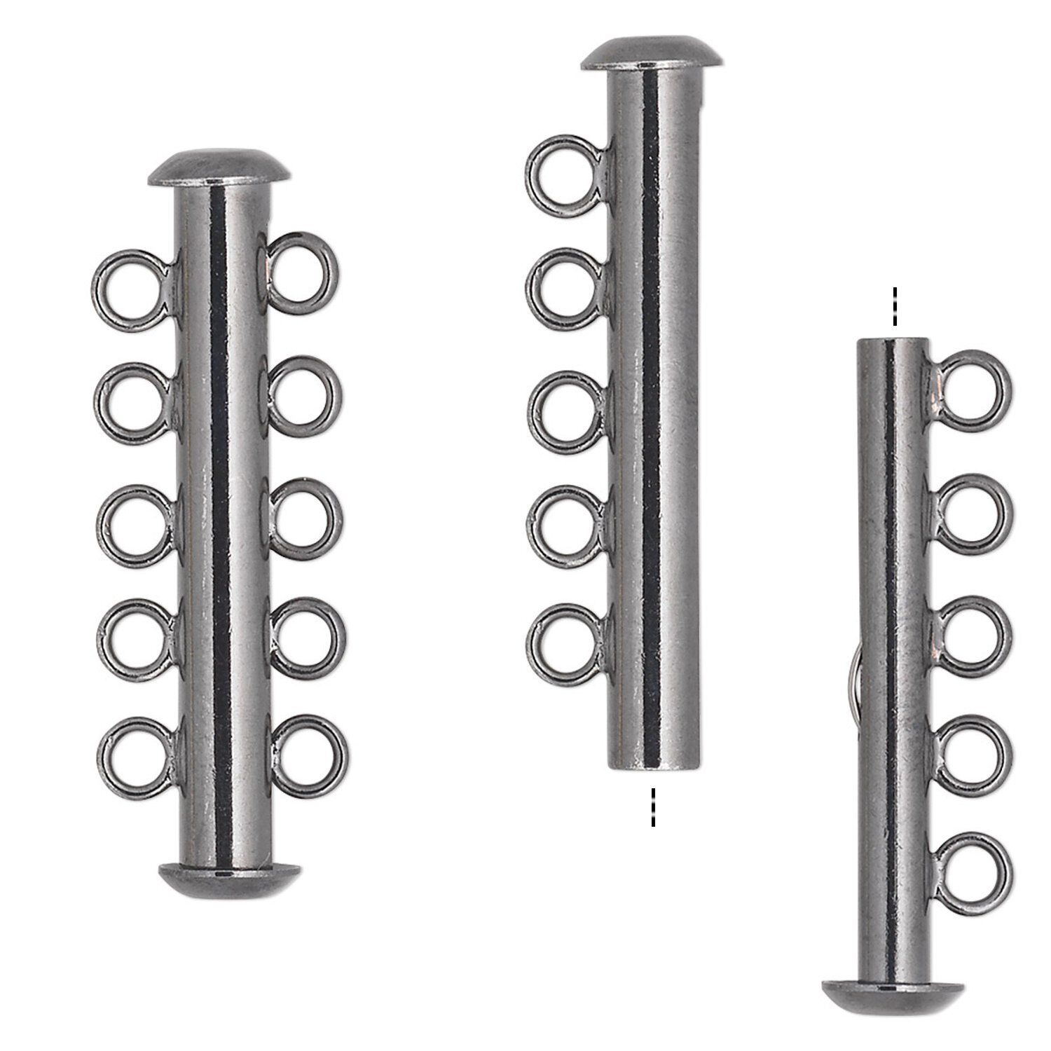 Clasp, 5-strand slide lock, gunmetal-plated brass, 31x6mm tube. Sold per pkg of 4.
