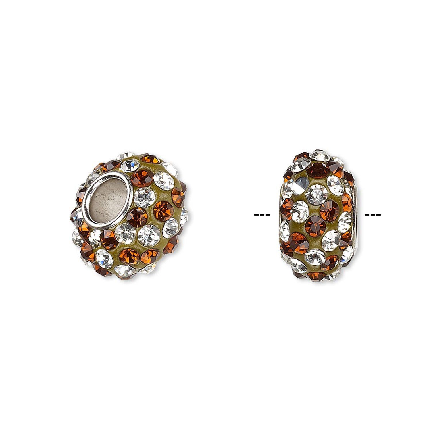 Dione® pavé-style large-hole bead is designed with faceted Czech glass rhinestone chatons hand-set in epoxy with an imitation rhodium-plated brass grommet. Bead features a spiral design and slides easily onto Dione® Easy-On chain, caprice chain or other cord for personalized style. These beads go hand-in-hand with popular Shamballa-style jewelry. Stones are hand-set so patterns and colors may vary.