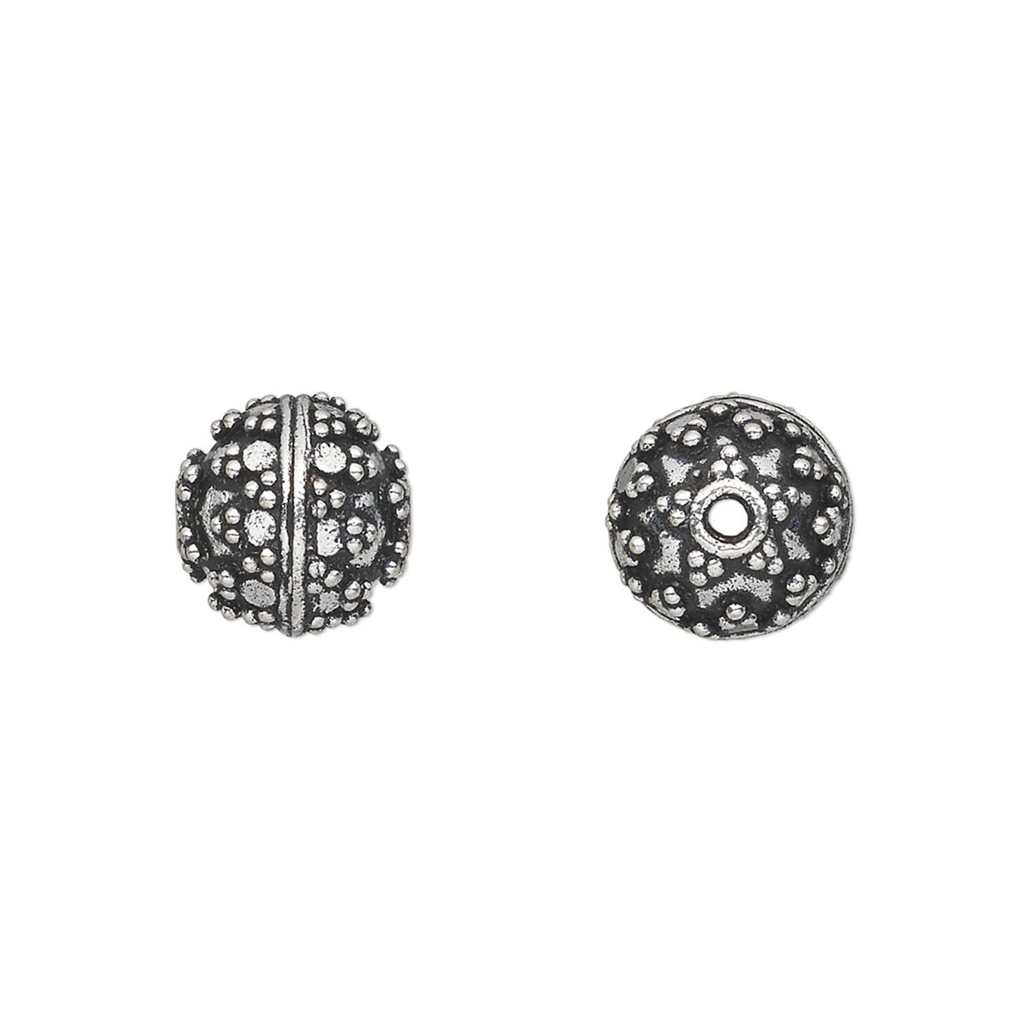 A blend of copper and zinc creates this cool shade of white brass. Antique silver-plated bead gives everyday jewelry the look of sterling silver at an economical price. Sizes, shapes and colors may vary with handcrafted items.