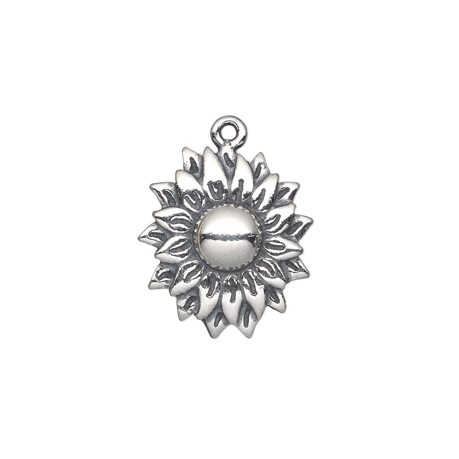 Charm, antiqued sterling silver, 19x17mm single-sided flower. Sold individually.