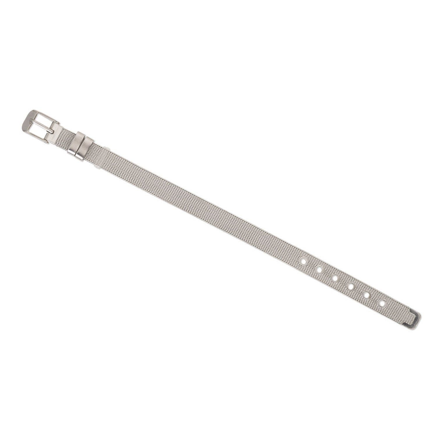 Bracelet, stainless steel, 10mm flat wide, adjustable from 5 to 7 inches with buckle clasp. Sold individually.