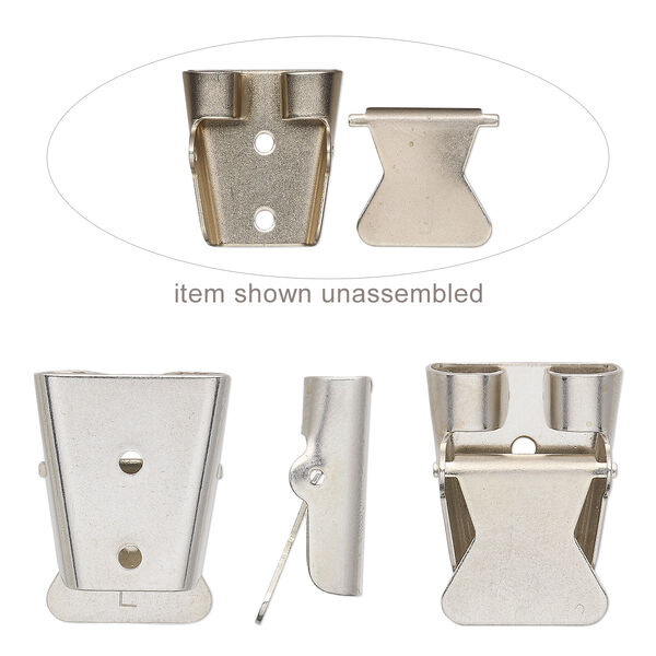 Bolo slide, nickel, 26x20mm lever-action, for use with leather cord. Sold per pkg of 10-2-piece sets.