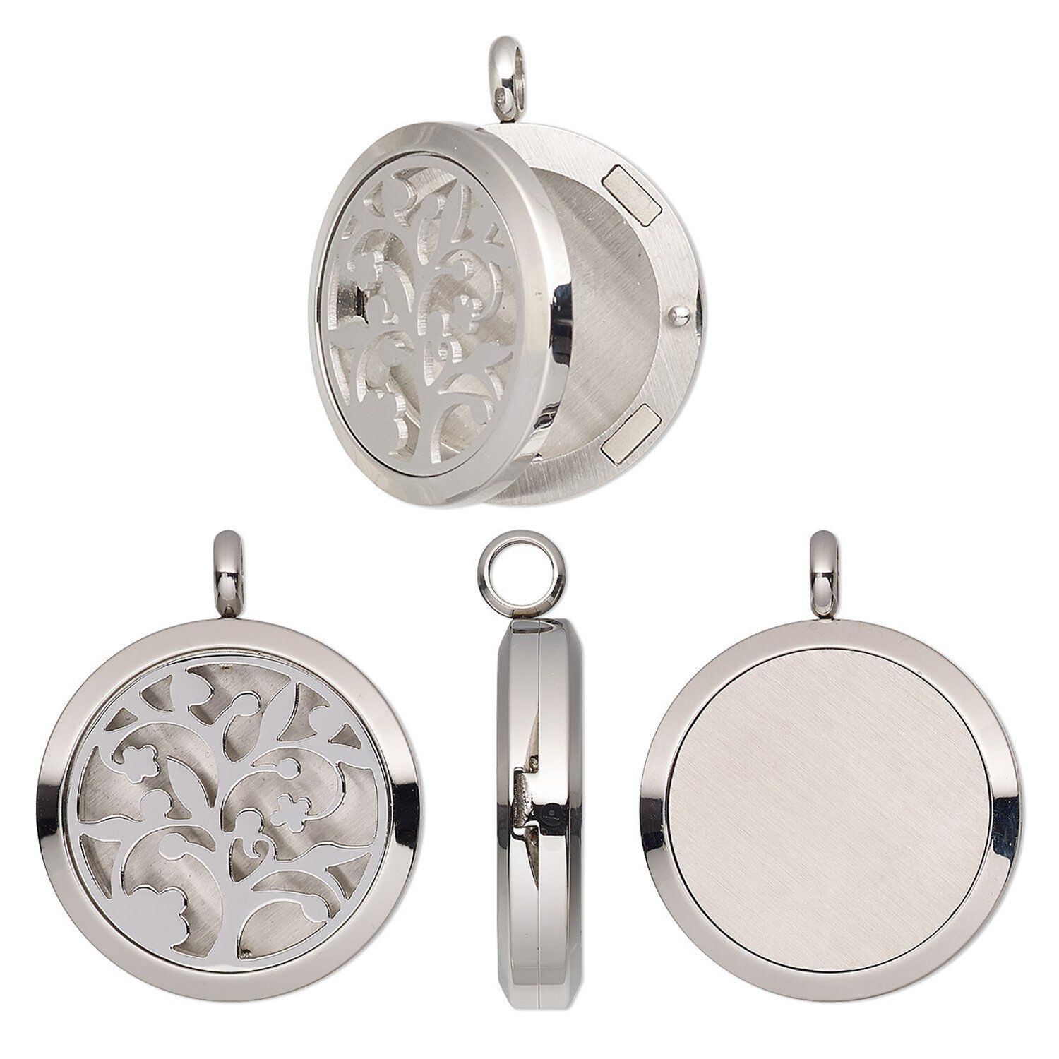 Magnetic closure locket is designed to work with locket inserts, to which drops of essential oils can be added for aromatherapy. Stainless steel locket will not discolor or oxidize, making it ideal for wet, humid, tropical environments and can be easily cleaned for switching inserts. Standard magnetic strength.