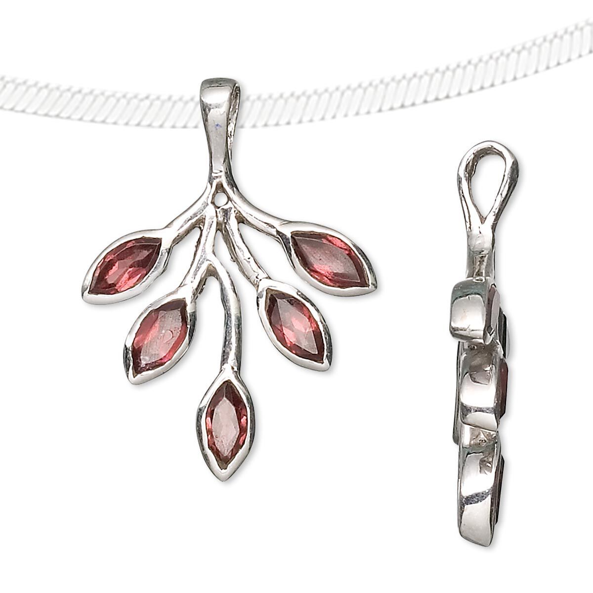 Pendant, garnet (natural) and sterling silver, 26x23mm with faceted marquise. Sold individually.