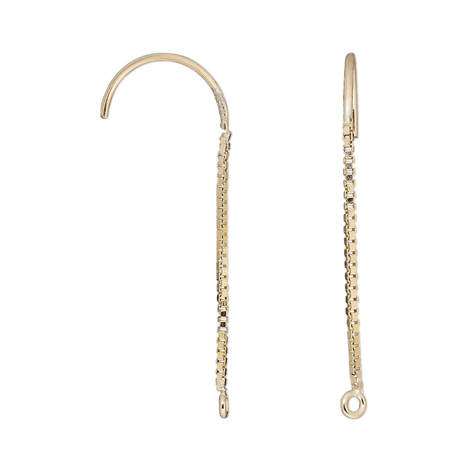 Box chain ear wires make stand-out dangle earrings a breeze. A simple head pin or eye pin is all you need to make delightful dangles. Curved piece slides through earlobe, resting at the base of the ear wire by the loop, and stays in place without the need of a bead hugger. Sizes, shapes and colors may vary with handcrafted items.
