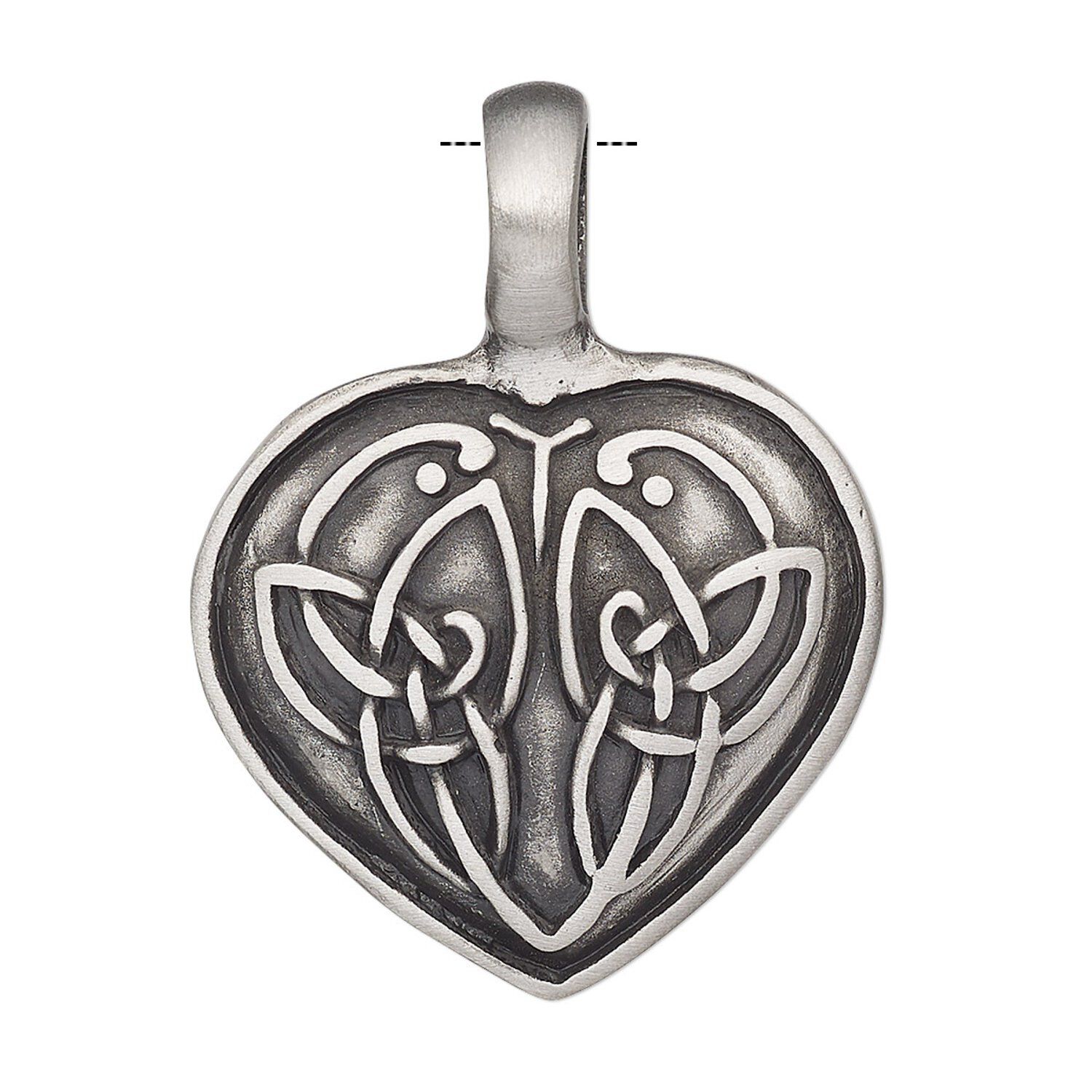 Celtic symbols of interconnectedness representing friendship, family or love are a popular addition to jewelry lines and resale offerings. Celtic knots were often used to exemplify timelessness since they have no visible beginning or end. This single-sided pendant showcases precise casting of a heart base with an intricate Celtic knot design in detail-enhancing antiqued pewter (tin-based alloy).