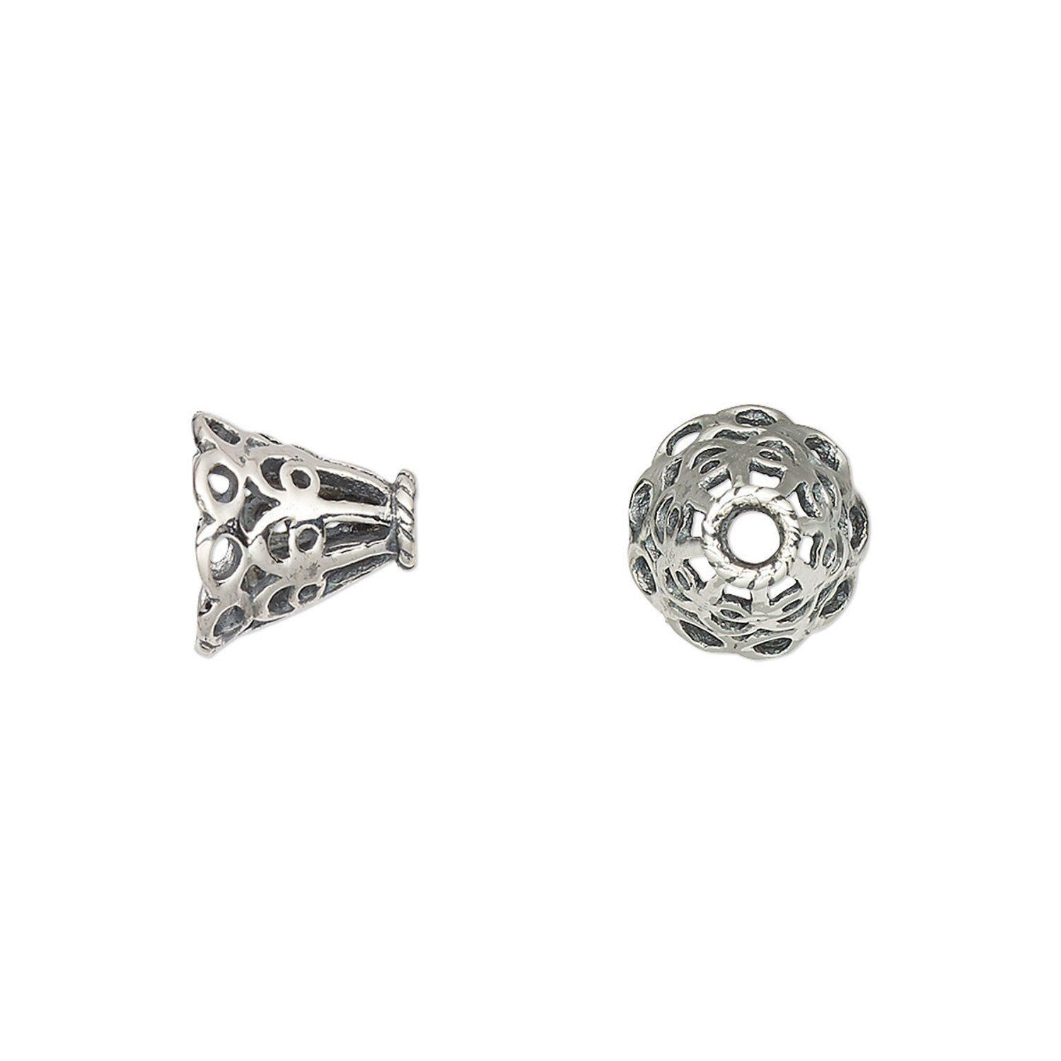 Bead cap, antiqued sterling silver, 10x9mm filigree cone, for 9mm bead. Sold per pkg of 2.