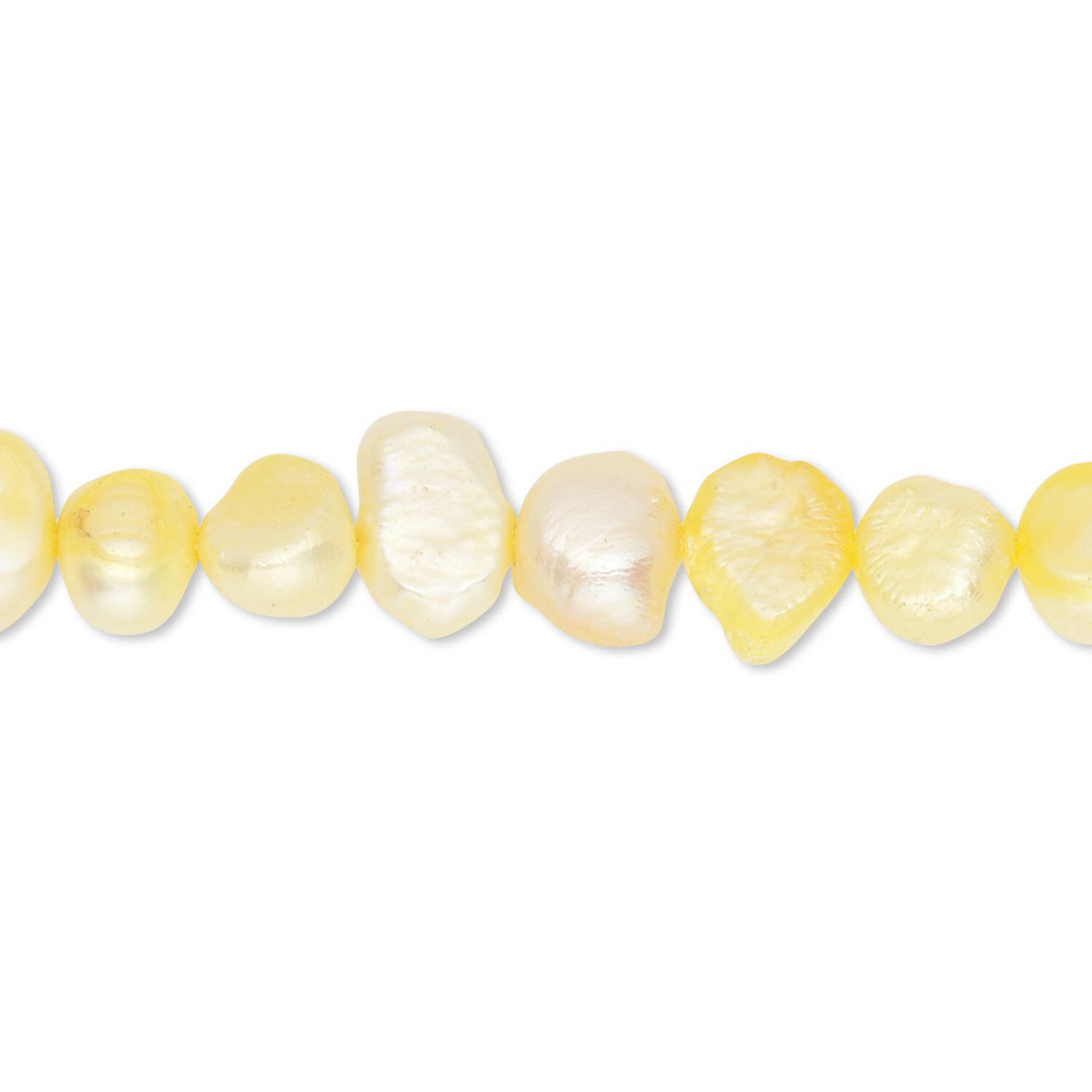 Pearl, cultured freshwater (dyed), canary, 6-7mm flat-sided potato, D grade, Mohs hardness 2-1/2 to 4. Sold per 16-inch strand.
