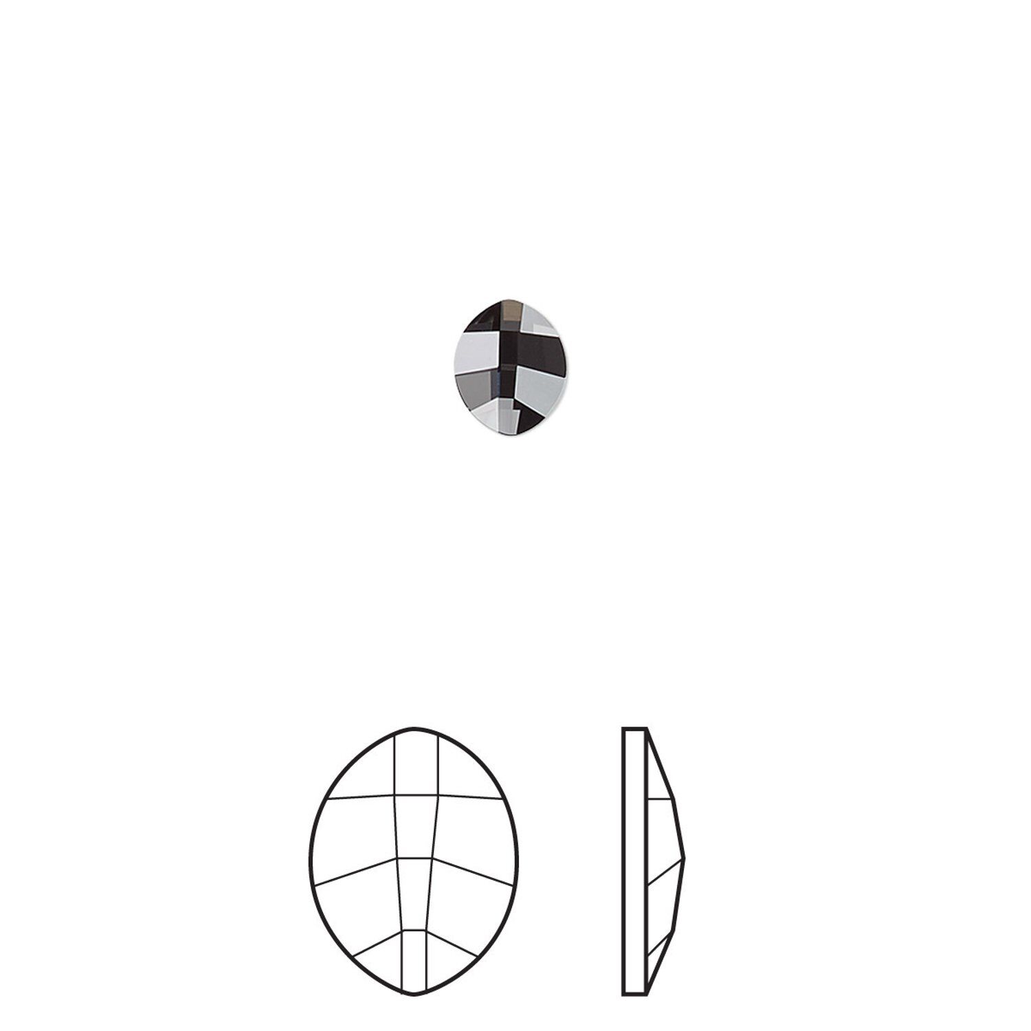 Flat back 2pk crystal silver night foil back, Crystal Passions® hotfix rhinestone 6x4.8mm pure leaf 2204