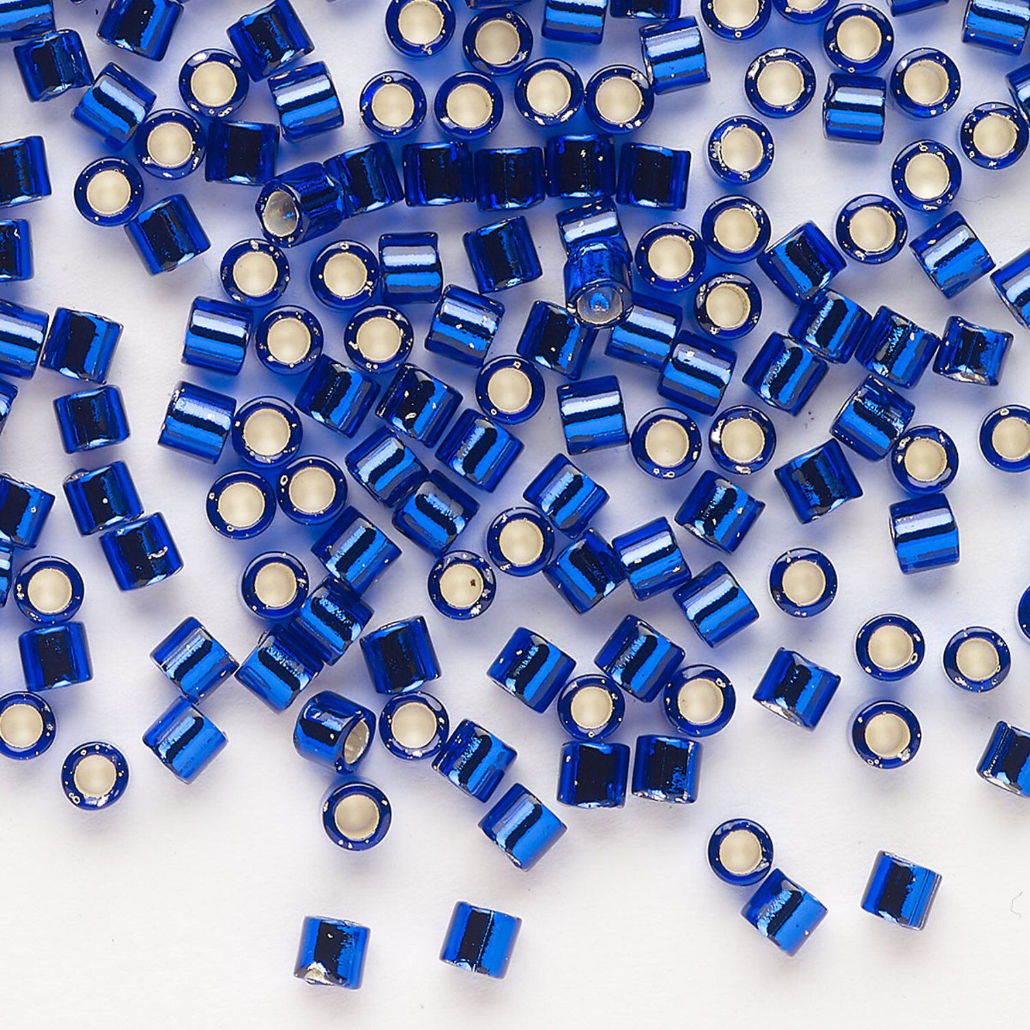 Seed bead, Delica®, glass, pkg/50g, #8 round, transparent silver-lined cobalt (DBL-0047).