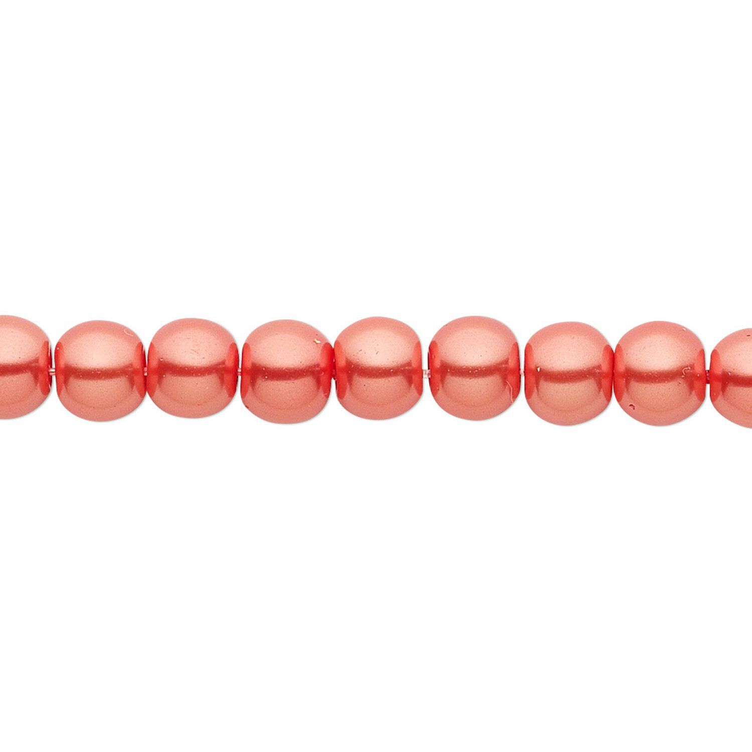 Bead, crystal pearl, orange-red, 6mm round. Sold per pkg of (2) 15-1/2" to 16" strands, approximately 130 beads.