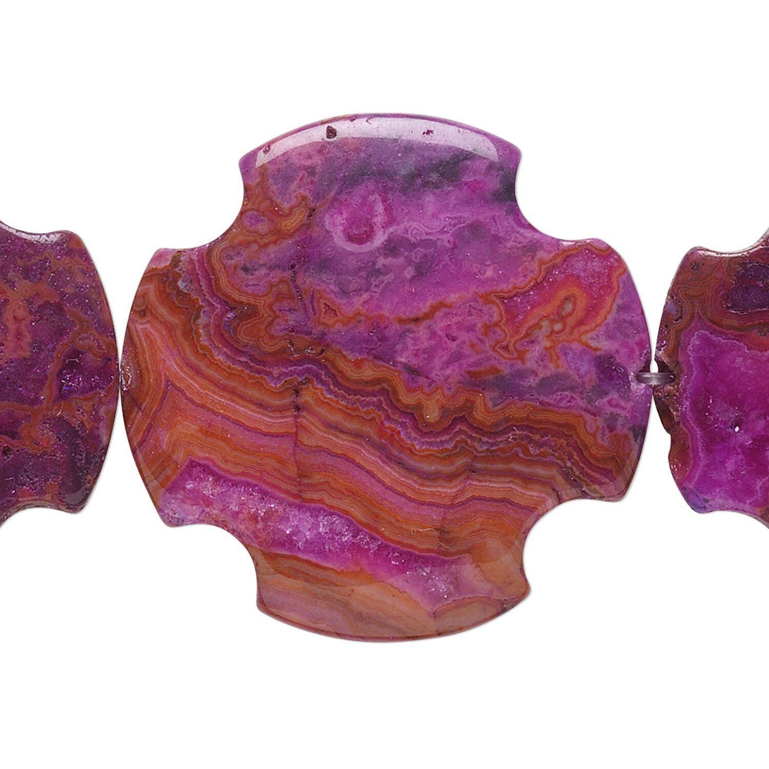 Known also as ruby red crazy lace agate for its dramatic ruby red color, accentuated by fuchsia hues in eye-catching tone-on-tone patterns, and punctuated with retro-orange banding. Color may vary from dye lot to dye lot. Testing for colorfastness is recommended.