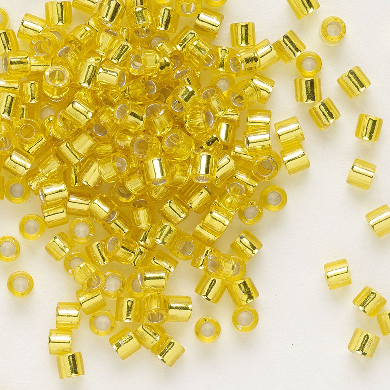 Seed bead, Delica®, glass, pkg/250g, #8 round, transparent silver-lined yellow (DBL-0145).