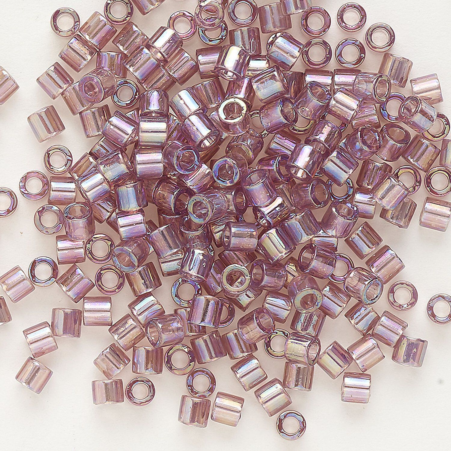 Seed bead, Delica®, glass, pkg/250g, #8 round, translucent rainbow smoky amethyst (DBL-0173).