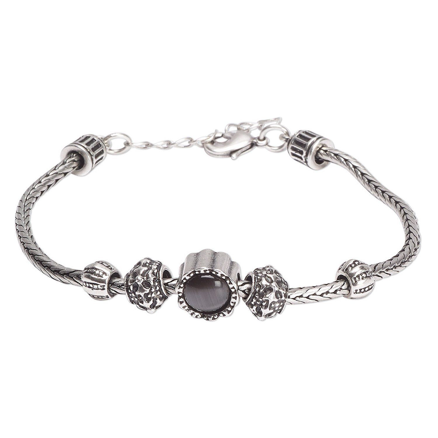 Bracelet, cat's eye glass and antique silver-finished "pewter" (zinc-based alloy), grey, 11.5mm wide, 6-1/2 inches with 1-1/2 inch extender chain and lobster claw clasp. Sold individually.