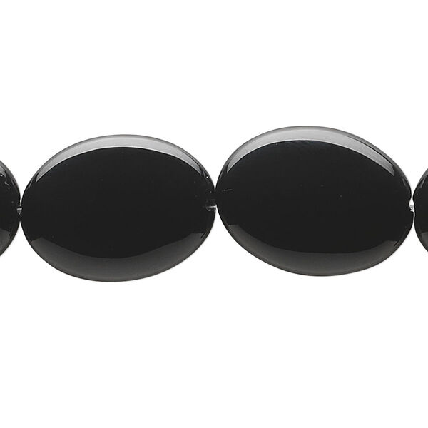 Black onyx 1pkg1, puffed oval bead 15.5-16 inch 20x15mm