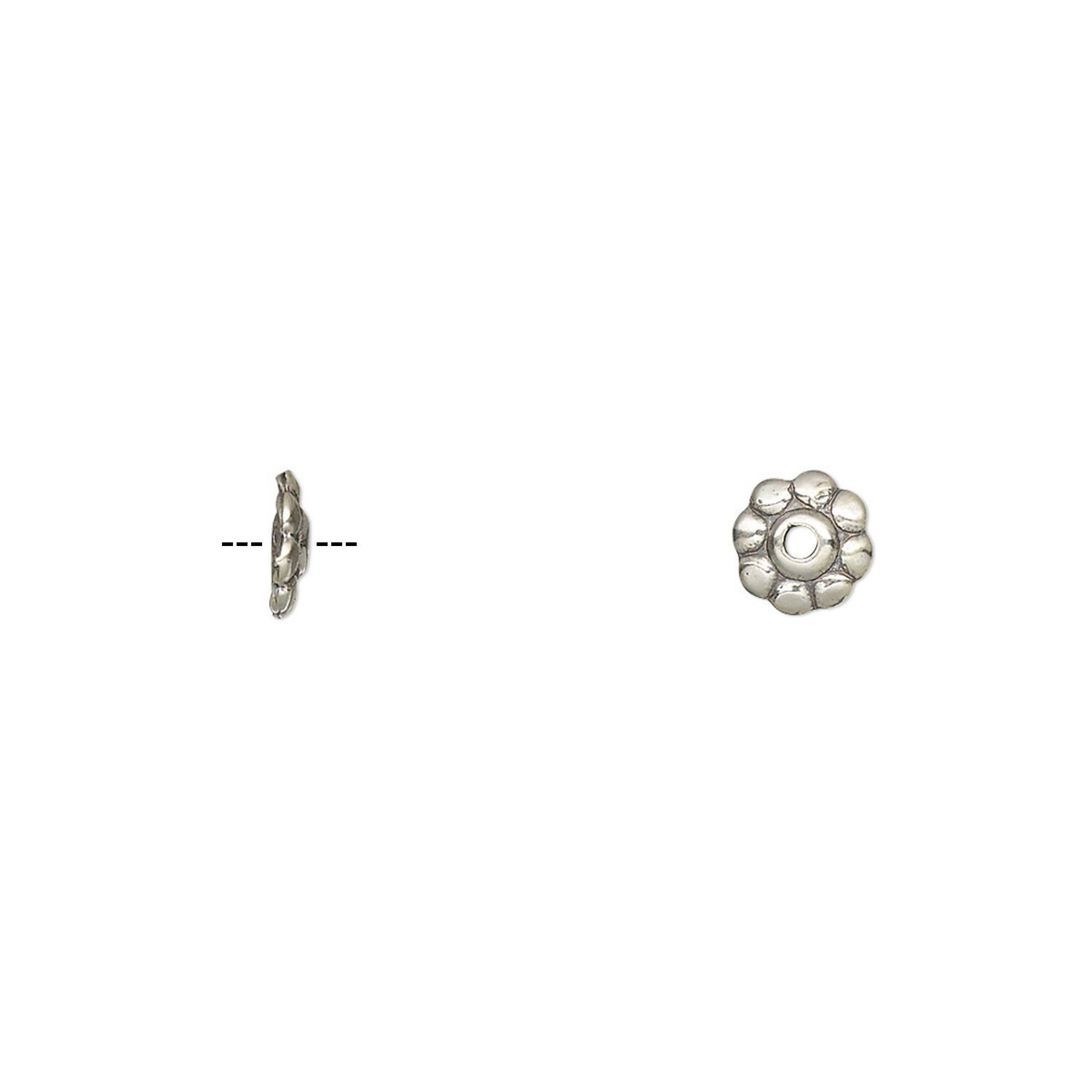 Bead cap, antiqued sterling silver, 6x1.5mm fancy round, fits 6-8mm beads. Sold per pkg of 10.