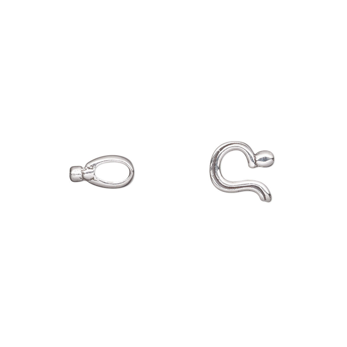 Clasp hook&eye 1pkg1 sterling silver, 14x7mm / crimp end / fits up to 0.5mm cord, antiqued JBB Findings 1-strand
