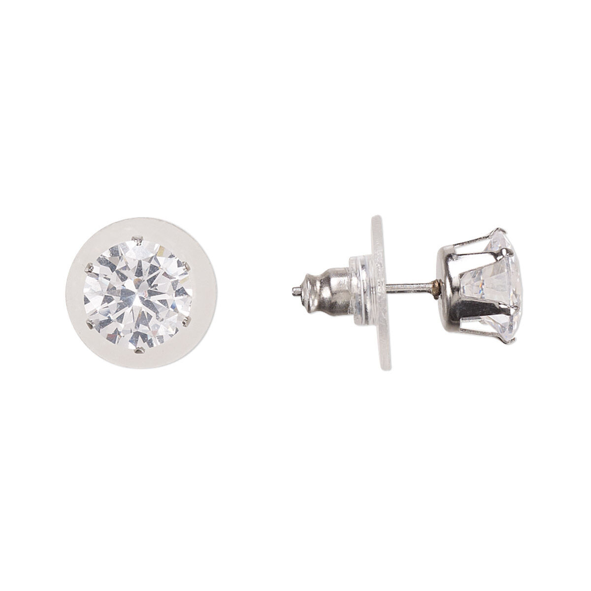 Earring, Everyday Jewelry, cubic zirconia and stainless steel, clear, 8mm round with post. Sold per 2 pairs.