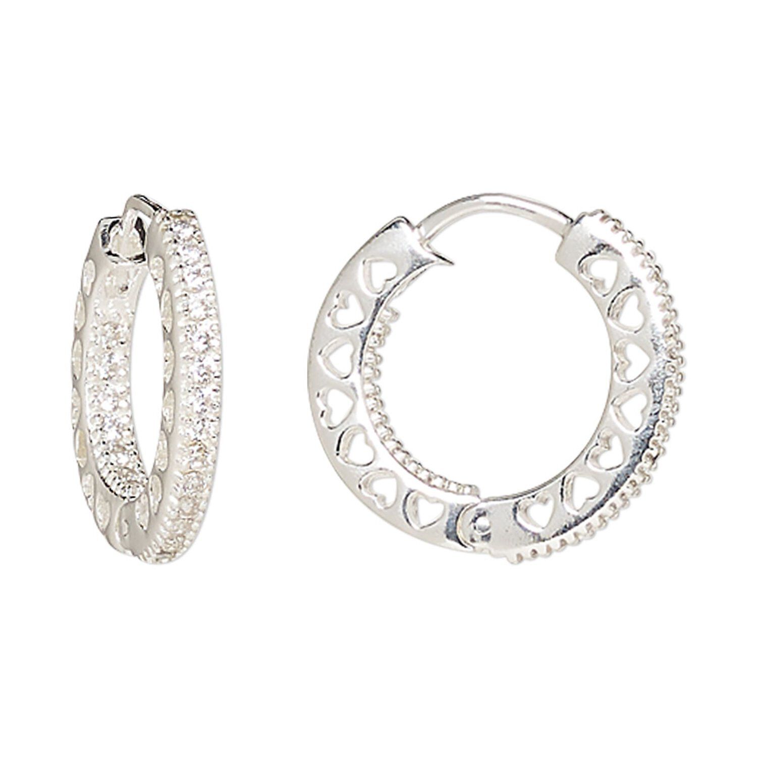 Adorned with sparkling cubic zirconia, these sterling silver hoops open from the middle with a hinge. Tiny heart cutout decorations make them perfect for wedding or date night jewelry, or for when you feel like adding a touch of romance to your everyday wardrobe.