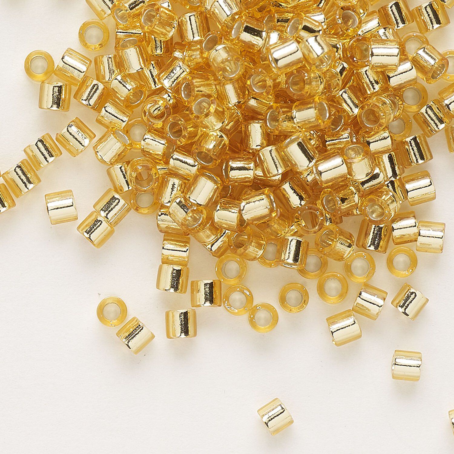 Seed bead, Delica®, glass, pkg/250g, #8 round, transparent silver-lined gold (DBL-0042).