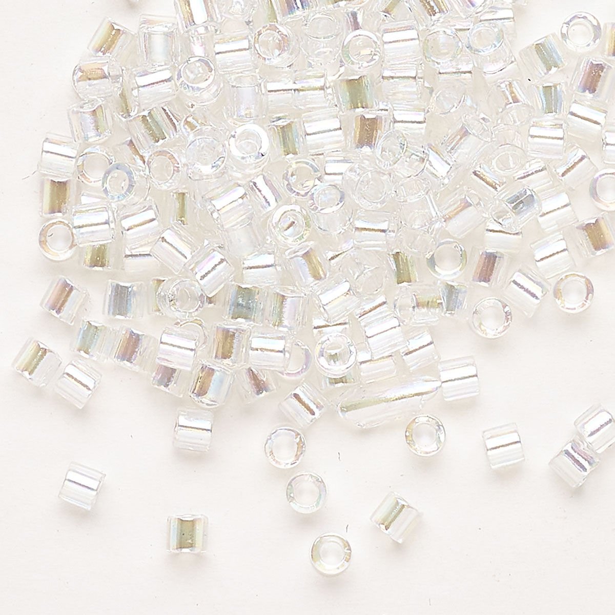 Seed bead, Delica®, glass, pkg/50g, #8 round, translucent rainbow crystal clear (DBL-0051).