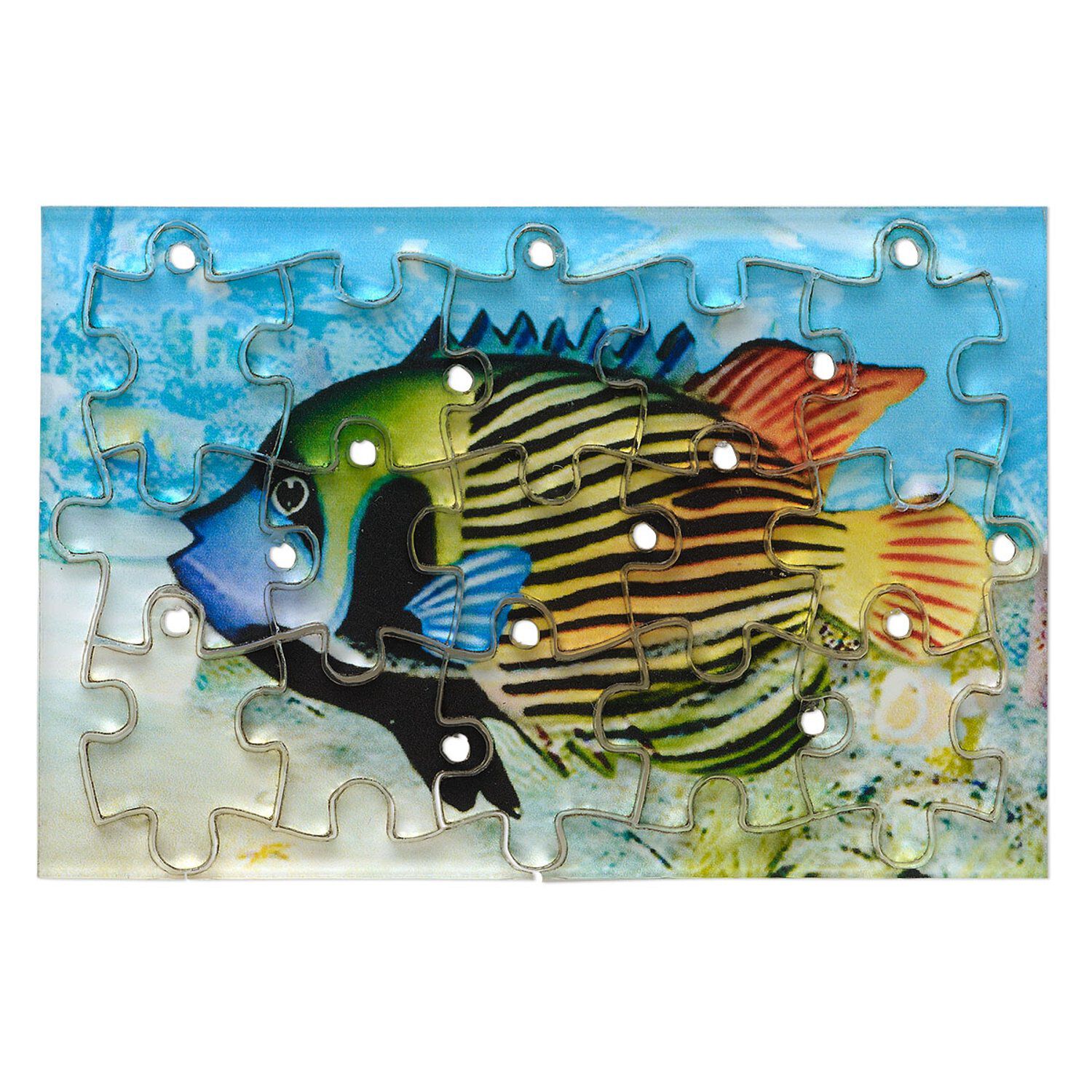Drop, acrylic, light blue / tan / multicolored, 3x2 inch puzzle with fish image and 20x15mm individual pieces. Sold per 15-piece set.