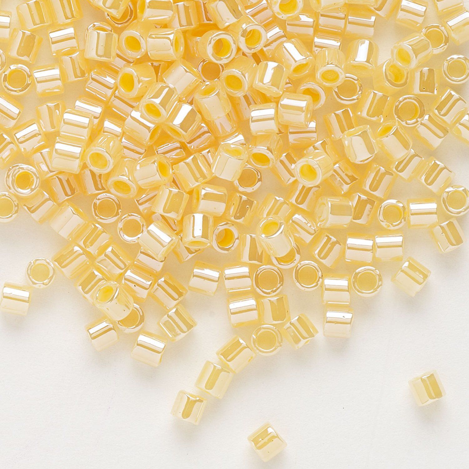 Seed bead, Delica®, glass, pkg/50g, #8 round, opaque inside dyed color luster light daffodil (DBL-0233).