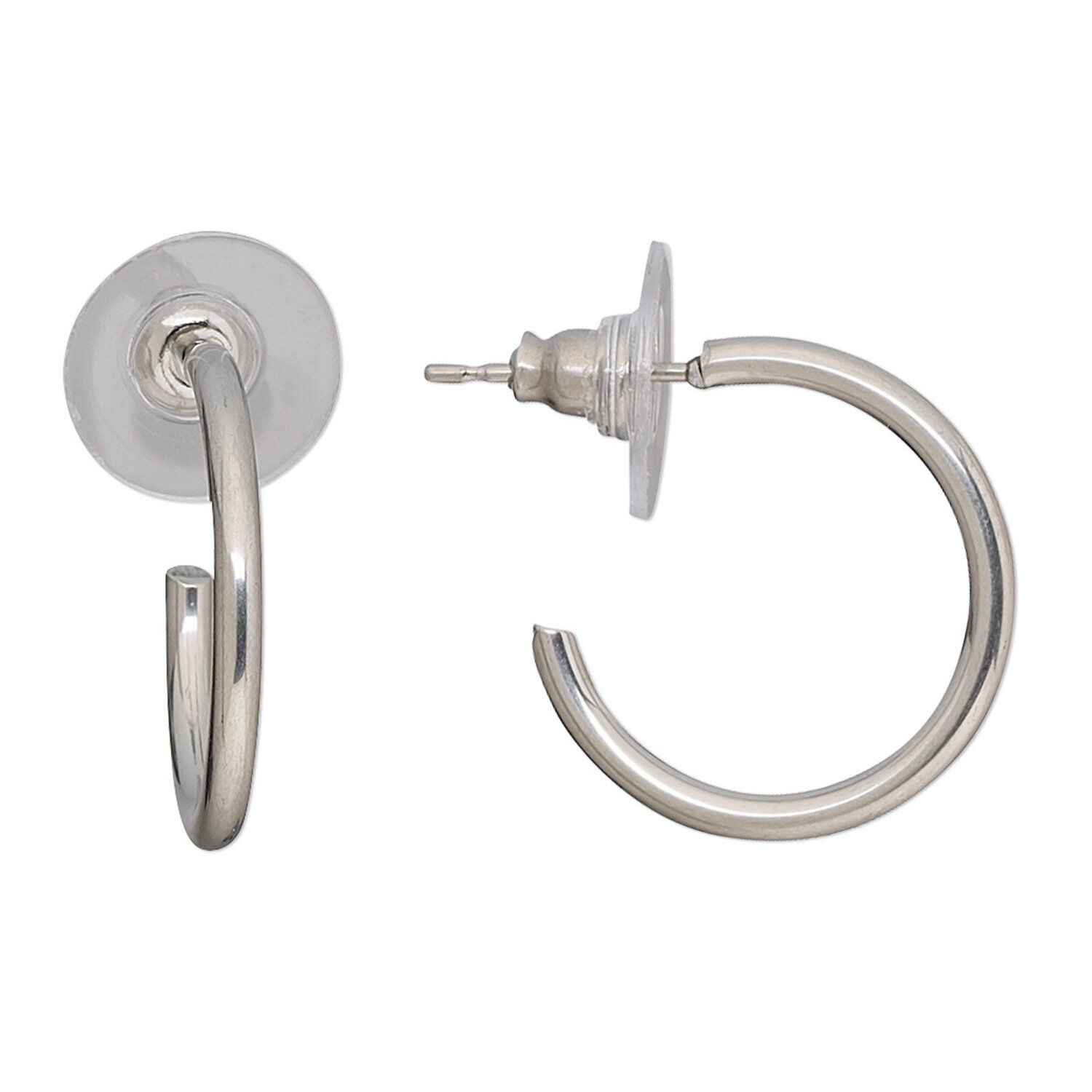 Stainless steel half-hoop earrings feature a comfort clutch to distribute the weight of heavier-style earrings and hold earrings in a more comfortable, straighter position.