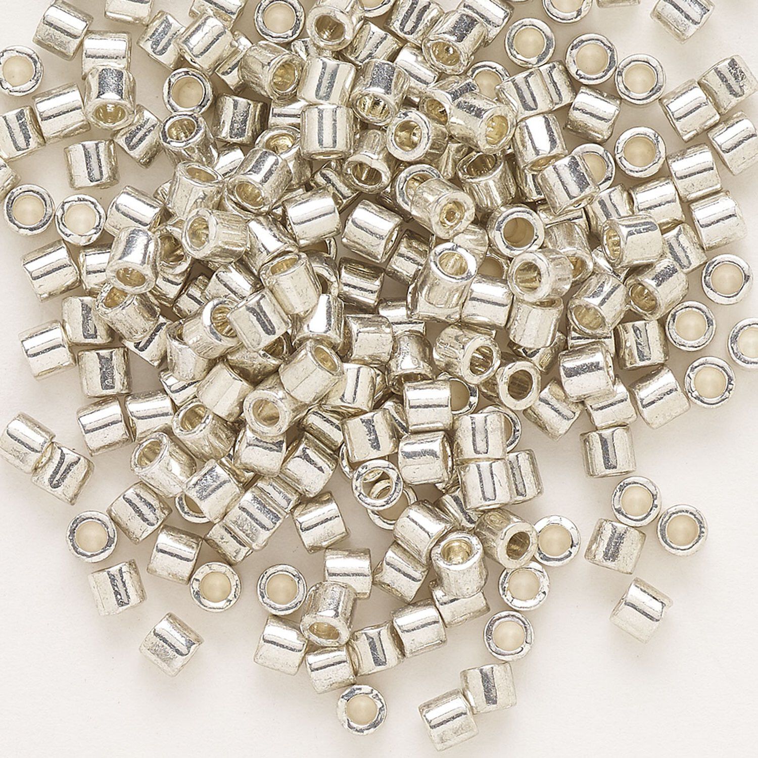 Seed bead, Delica®, glass, pkg/250g, #8 round, opaque galvanized silver (DBL-0035).