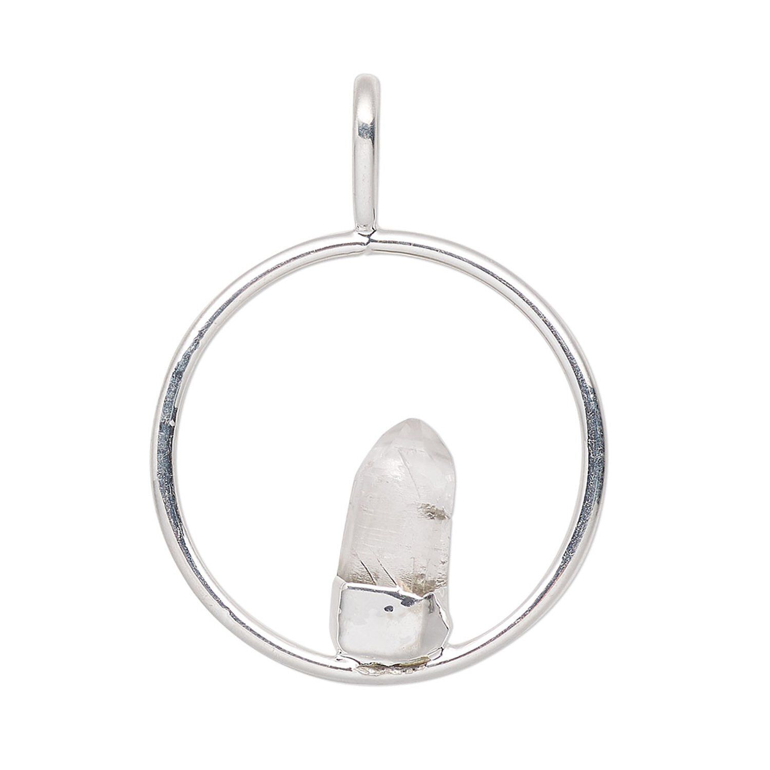 Add a touch of organic beauty to any outfit with this stunning pendant. Rich silver plating gives a cool gleam to this simple yet elegant piece, and the open round design allows the quartz crystal freeform point to be the main attraction. This pendant is lovely by itself or layered, making it perfect for any occasion.