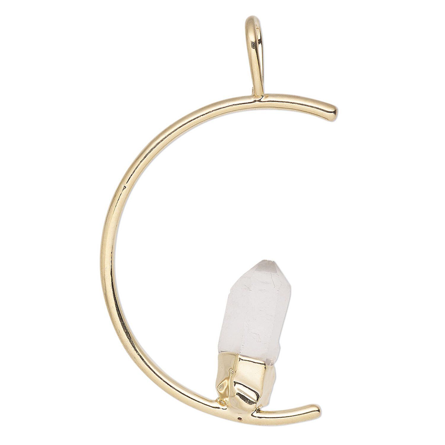Pendant, Everyday Jewelry, gold-plated brass and quartz crystal (natural), 45x23mm-47x25mm open half round. Sold individually.