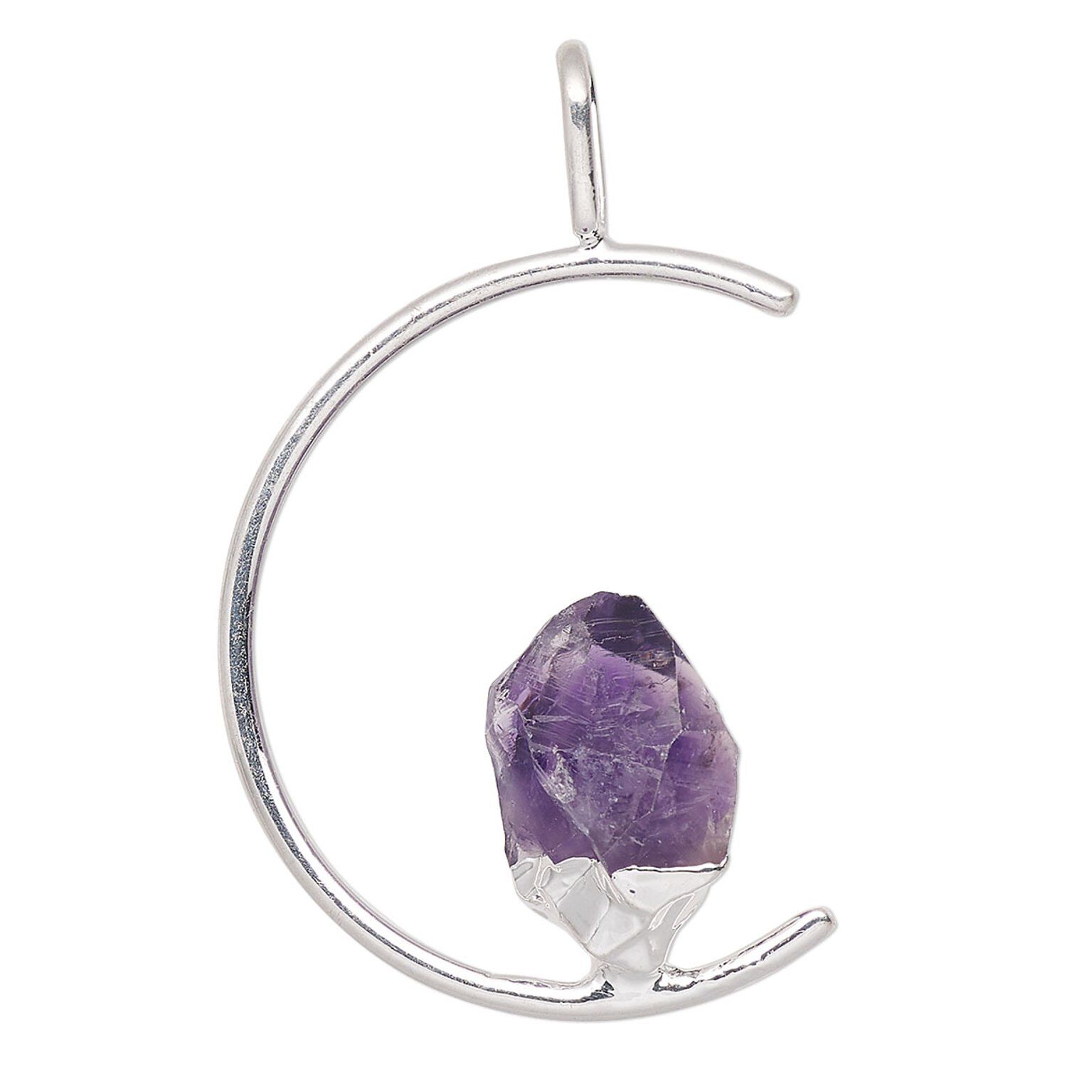 Add a touch of organic beauty to any outfit with this stunning pendant. Rich silver plating gives a cool gleam to this simple yet elegant piece, and the open half-round design allows the amethyst freeform point to be the main attraction. This pendant is lovely by itself or layered, making it perfect for any occasion.