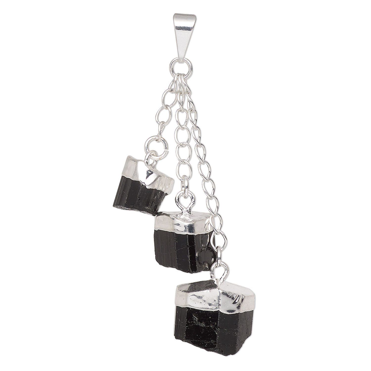 Pendant, Everyday Jewelry, silver-plated brass and black tourmaline (natural), (3) 49-51mm dangling points. Sold individually.