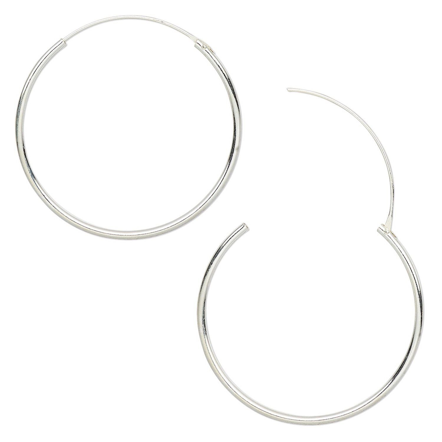Earring hoop 1pkg2 sterling silver, 30mm round / endless loop, 1 pair