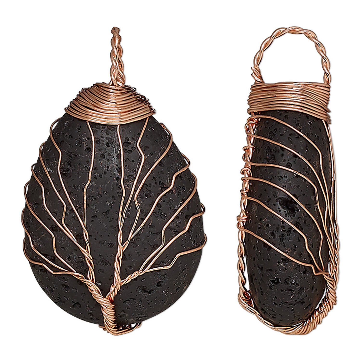 Lava rock / brass 1pkg1, copper-plated 1-sided puffed teardrop / tree of life pendant 42x31mm-49x31mm