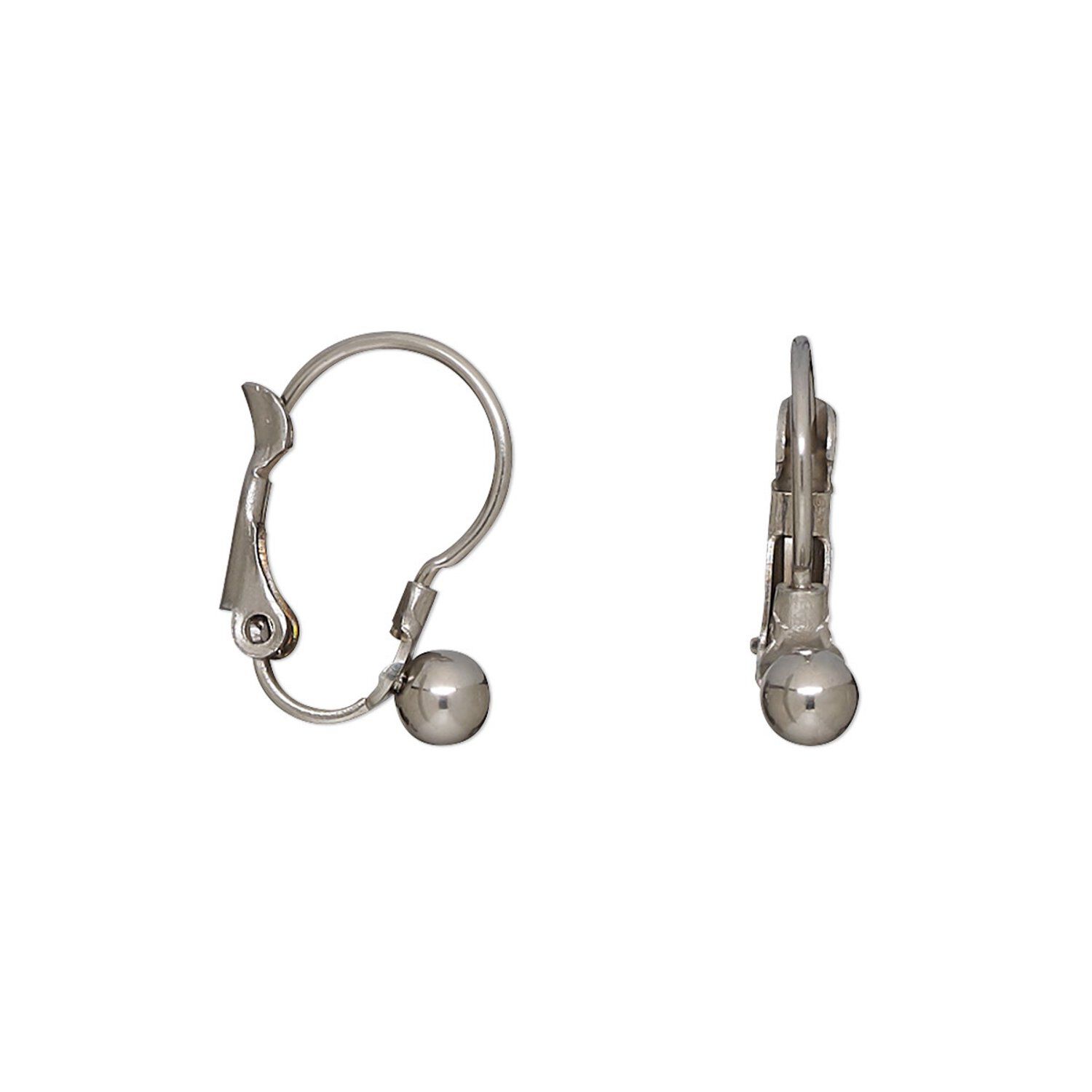 Earring leverback 1pkg4, 16mm / 4mm ball, stainless steel 2 pair