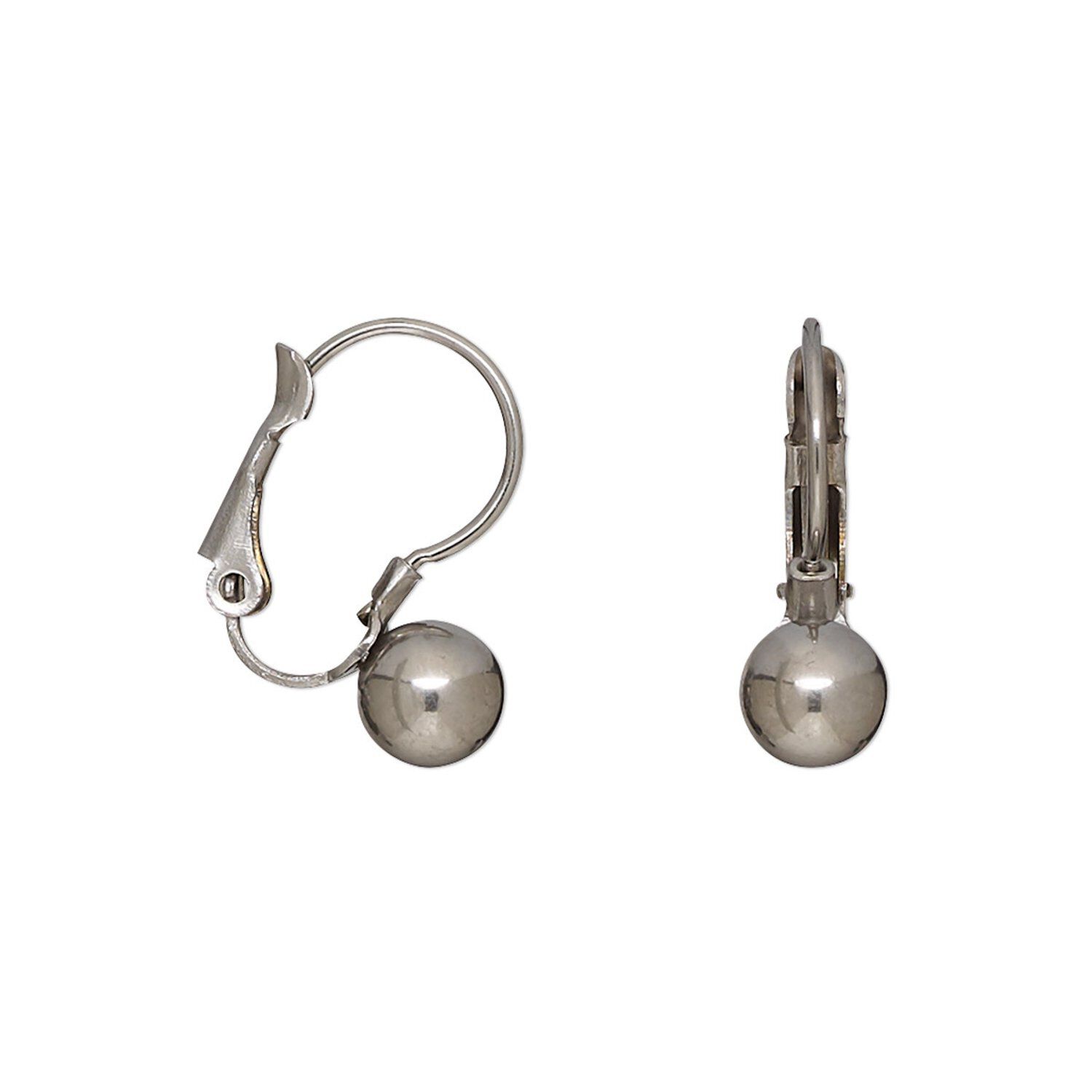 Earring leverback 1pkg4, 16mm / 6mm ball, stainless steel 2 pair